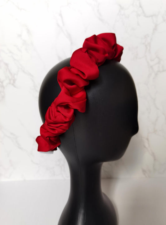 Chou Fagnéva – Bandeau froncé en satin rouge