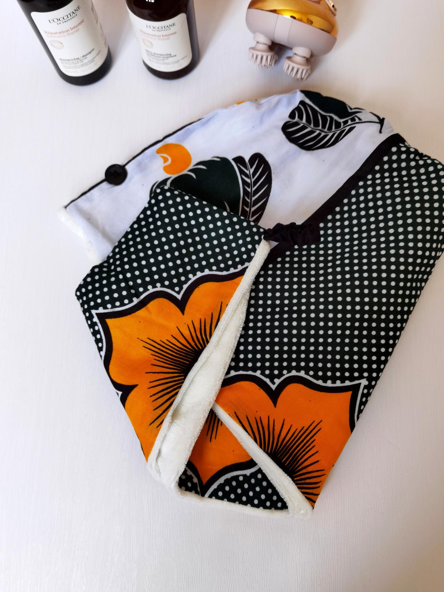 Taji Serviette – Turban-Serviette en Tissu Kanga & Microfibre de Bambou