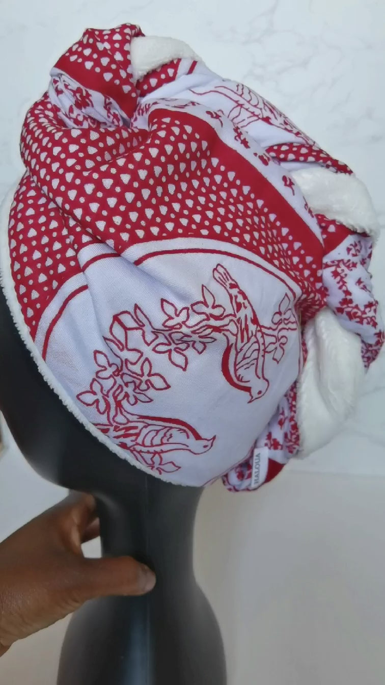 Avec son extérieur en tissu kanga jaune aux motifs rouges éclatants et son intérieur en microfibre de bambou, Taji Serviette sèche tes cheveux tout en douceur, tout en sublimant ton allure. Parfait pour envelopper ta chevelure après un shampoing ou un bain, il respecte la texture de tes cheveux, réduit les frisottis et t’offre un confort incomparable.
